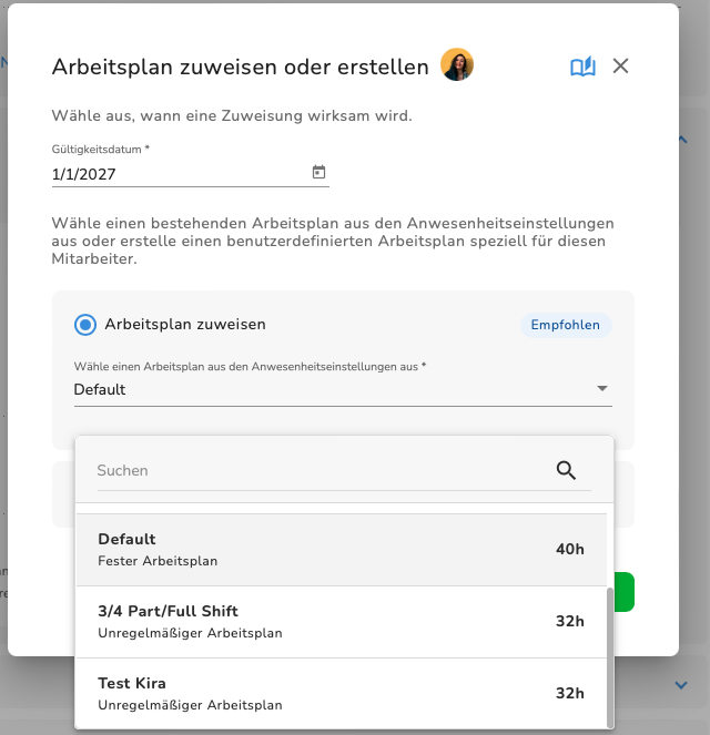 Nach dem Speichern kannst Du den Arbeitsplan Mitarbeitern zuweisen. Aber lass uns Schritt für Schritt beginnen.