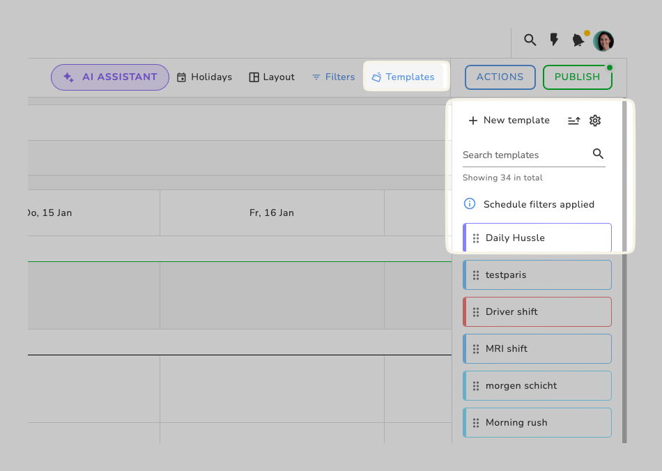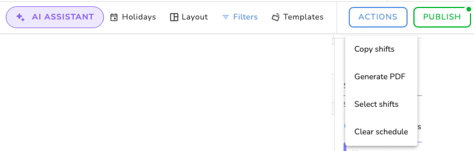 Actions on visible shifts: All settings around copying, deleting shifts in bulk and publishing shifts are stored in this cluster of permissions