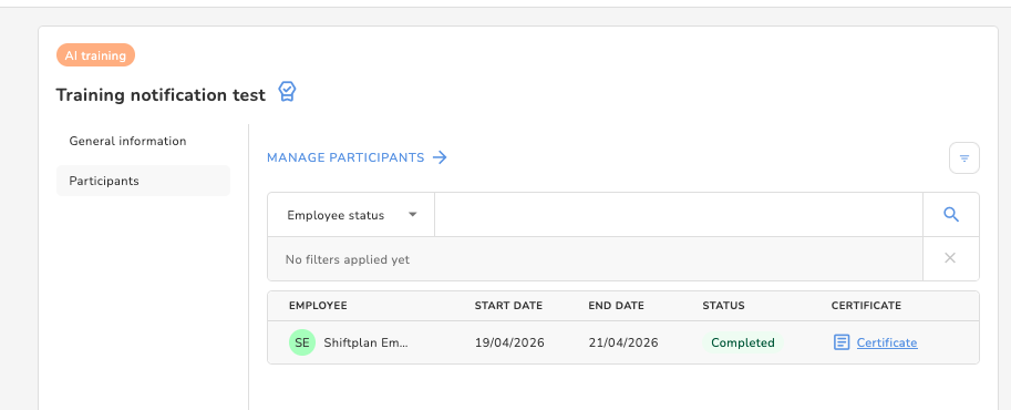 - How employees can end trainings without and with a required certificate